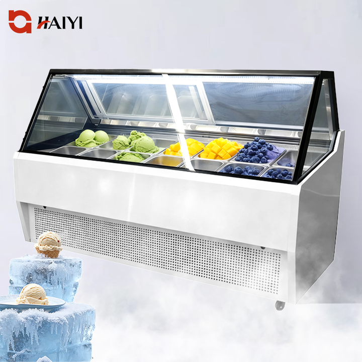 Commercial Chest Freezer Counter Top Ice Cream Display Refrigerator Equipment 12 Pans Ice Cream showcase Freezer for Supermarket