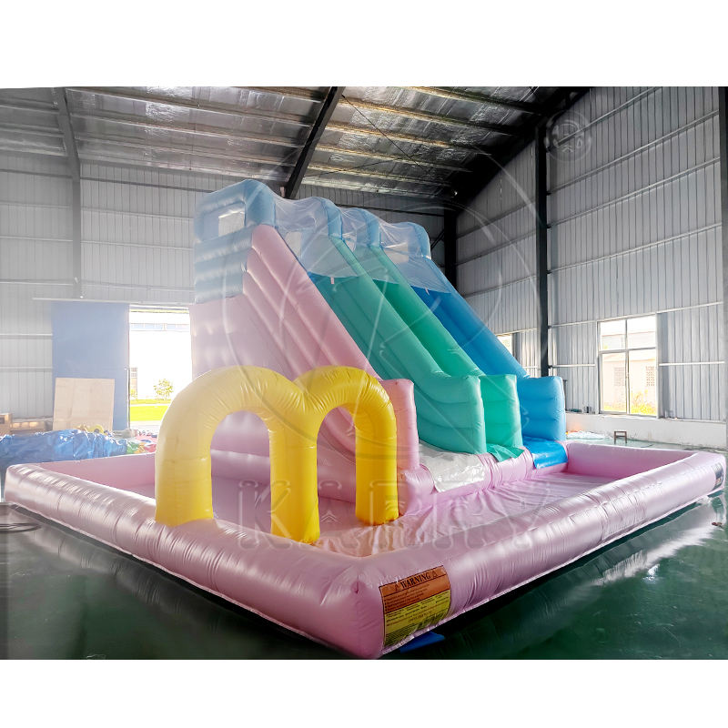 Commercial Custom Size 23ft Macaron Color Double Slide Inflatable Water Slide with Large Pool Adults Inflatable Water Slides