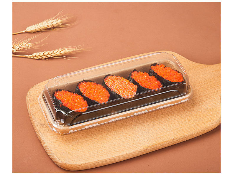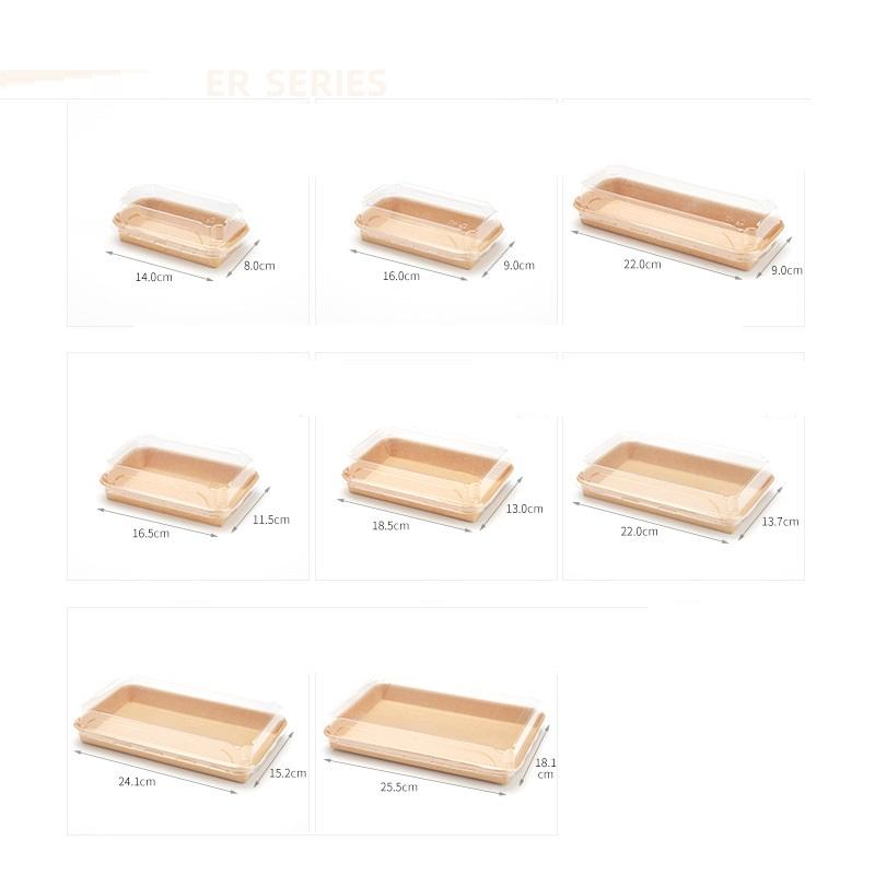 Commercial Disposable High Grade Takeaway Kraft Paper Rectangular Light Salad Sushi Box Tray With Lid