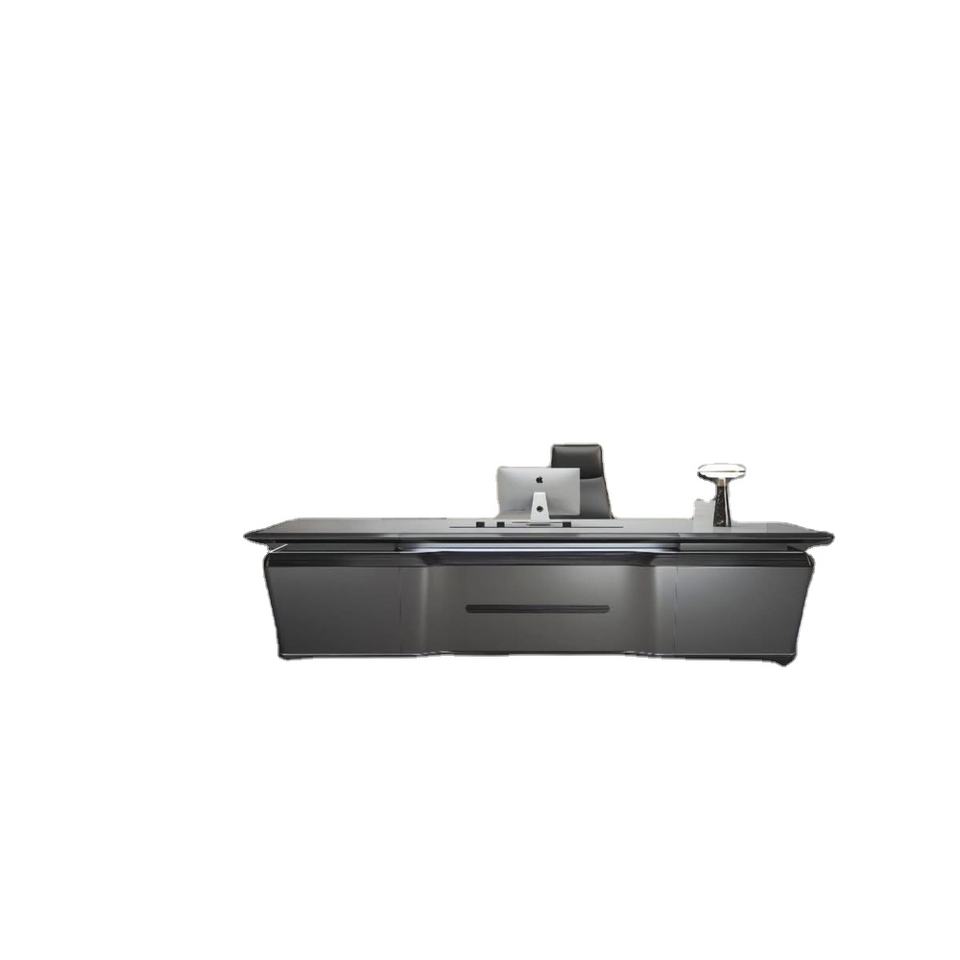 Commercial E1 Plywood HPL Executive Table CNC Cutting Metal Grill Design Office Workstation with Storage Cabinet