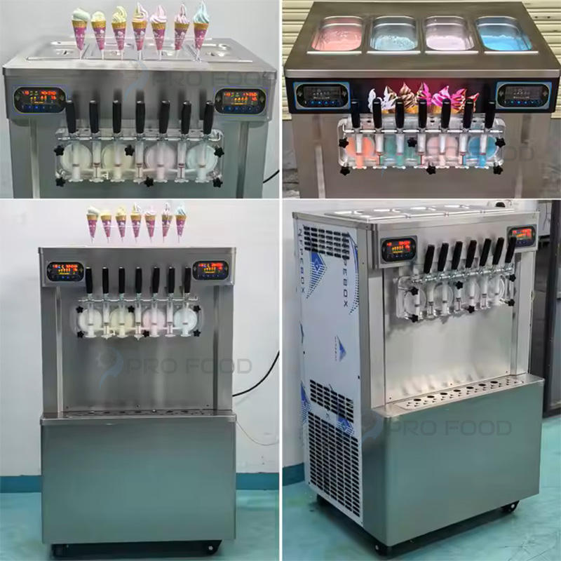 Commercial Fully Automatic 7 Flavors Soft Ice Cream Milk Slurry Machine Multifunctional Vertical Stall Cone Design