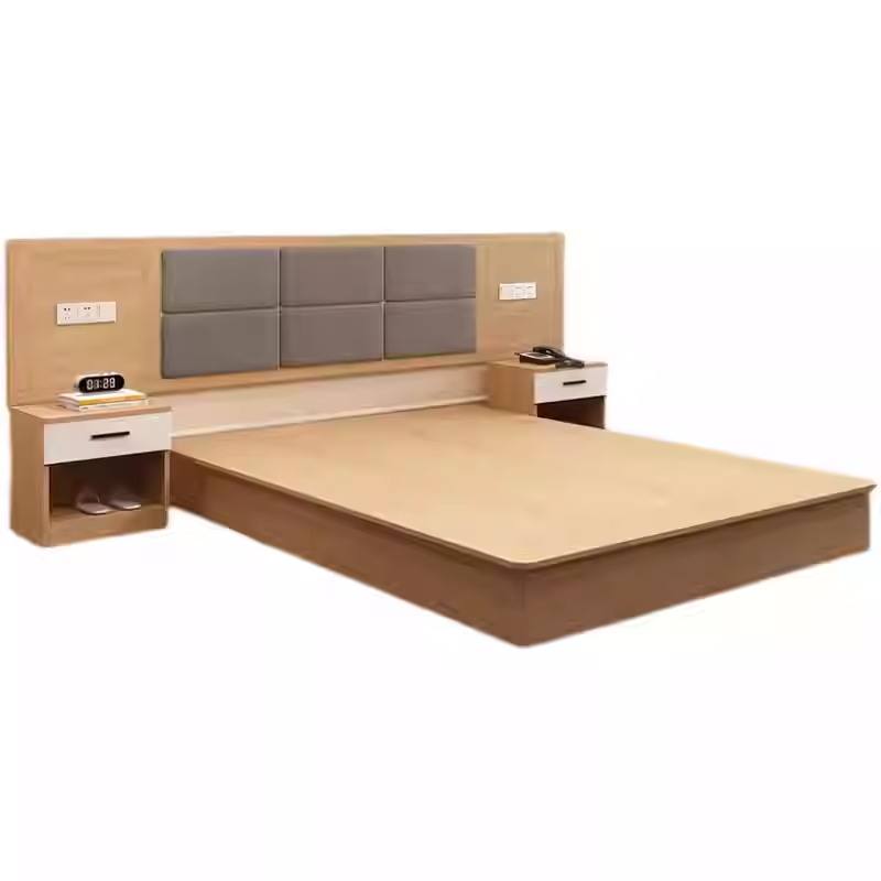 Modern Commercial Full Bedroom Set Cost-Effective Platform Solid Wood Hotel Bed Upholstered Headboard Desk Nightstand Water