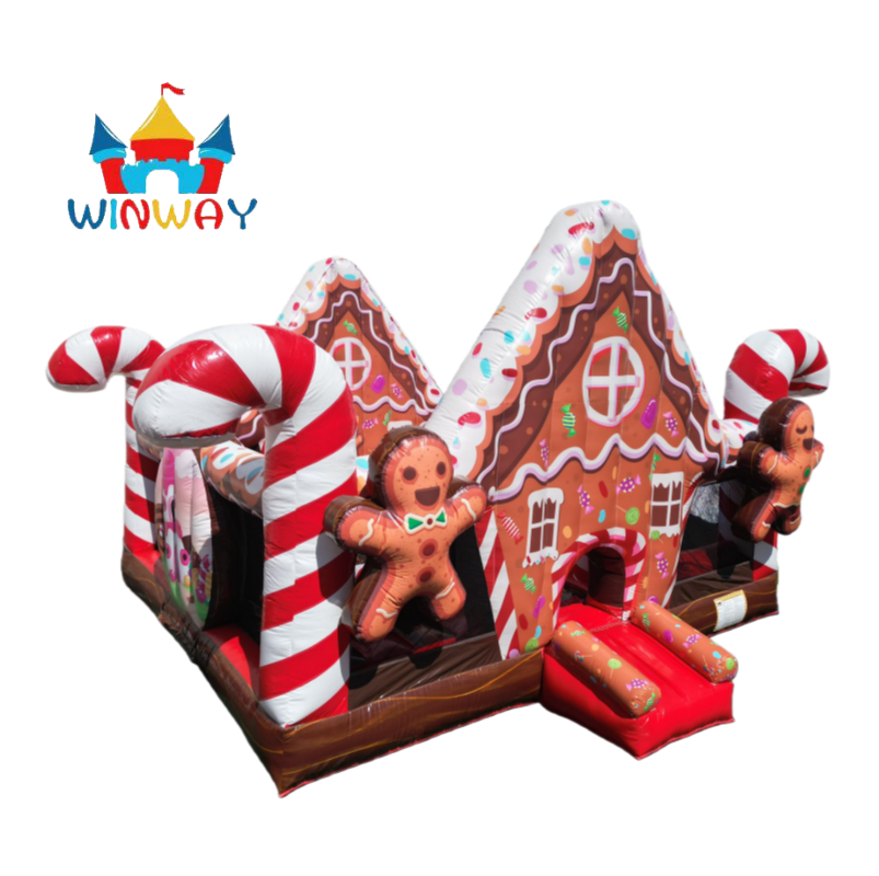 Commercial Gingerbread House Inflatable Trampoline Park, Outdoor Indoor Kids Candy Decor Bounce Playground for Rentals