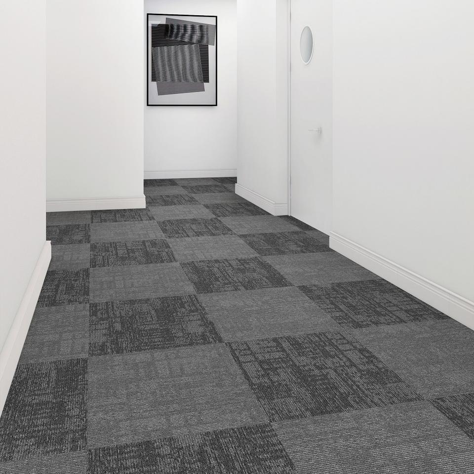 Commercial Grade Modern Fireproof Polypropylene Loop Pile Cushioned Square Striped Carpet Tiles