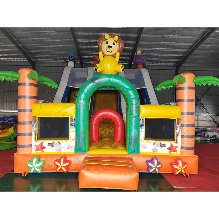 Lion Inflatable wet dry slide with double lane slides