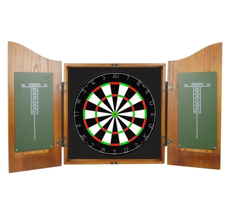 Commercial Grade Solid Wood Dartboard Cabinet Set - High-End Display Case with Accessories for Pub & Gym Games