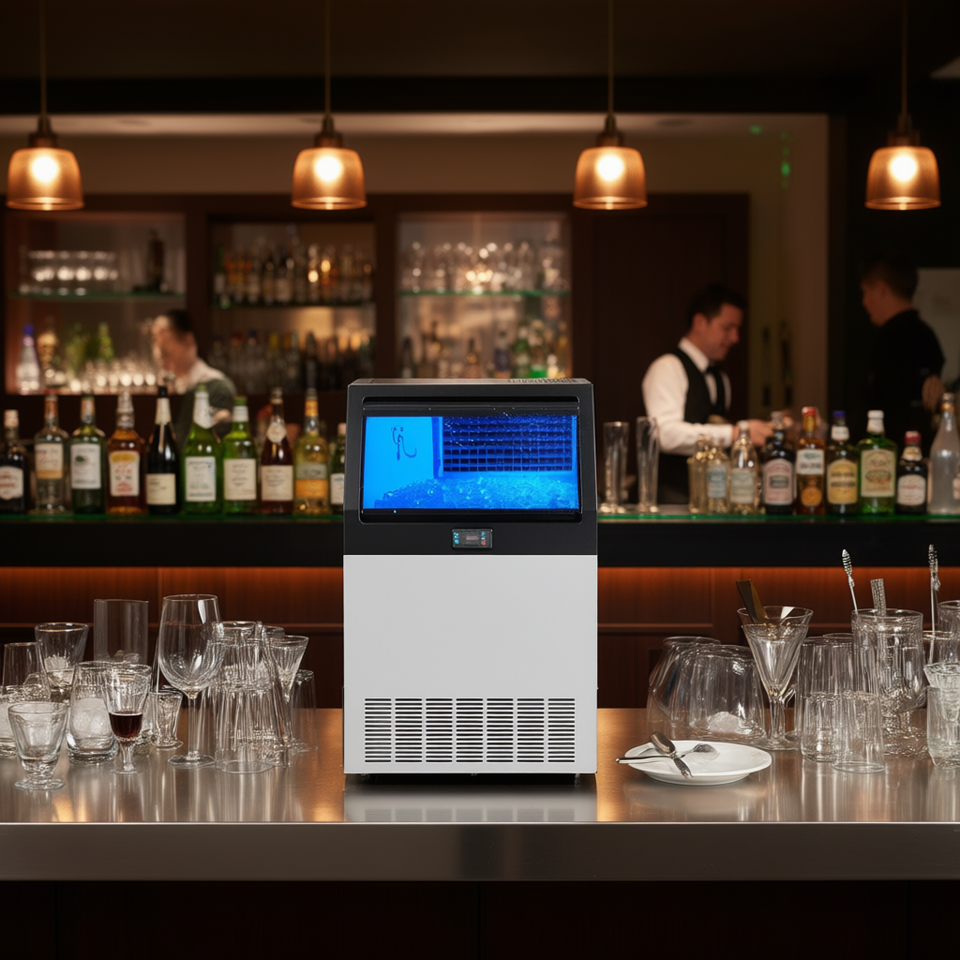 Commercial Ice Maker 265lbs 24H Freestanding LED Digital Display Stainless Steel Cabinet For Home Bar Restaurant