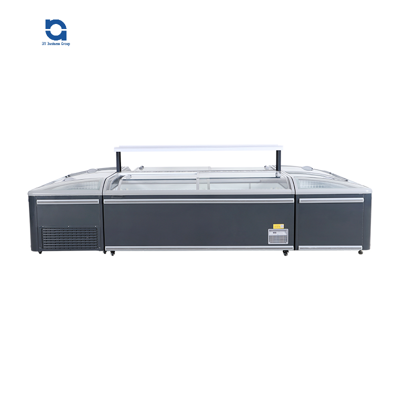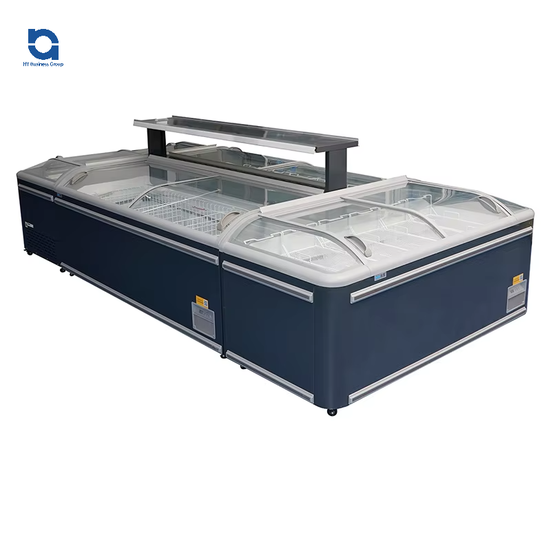 Commercial 4-Door Single-Temperature Glass Door Island Display Freezer Automatic Defrost Fan Cooling Digital Control for