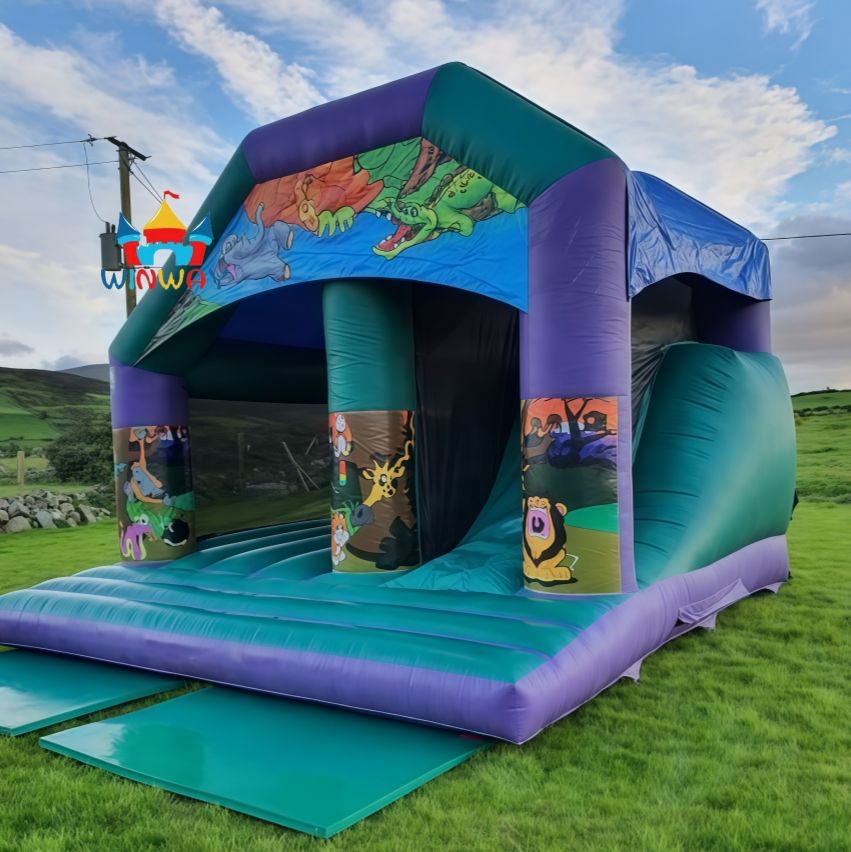 Commercial Jungle Animal - Themed Inflatable Bounce House with Slide for Kids' Birthday Parties, Backyard Fun, Carnival Events