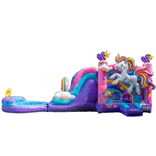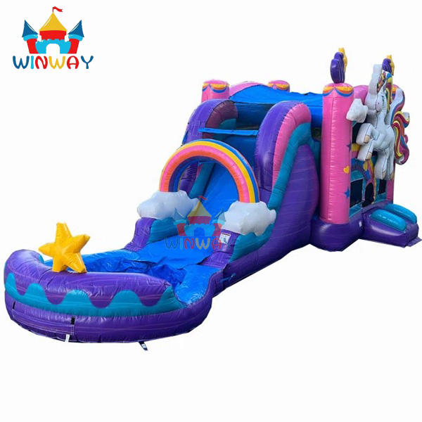 Commercial Kids Inflatable Castle Combo Unicorn Bounce House with Wet Dry Slide Small Jumping Castle for Party Rentals