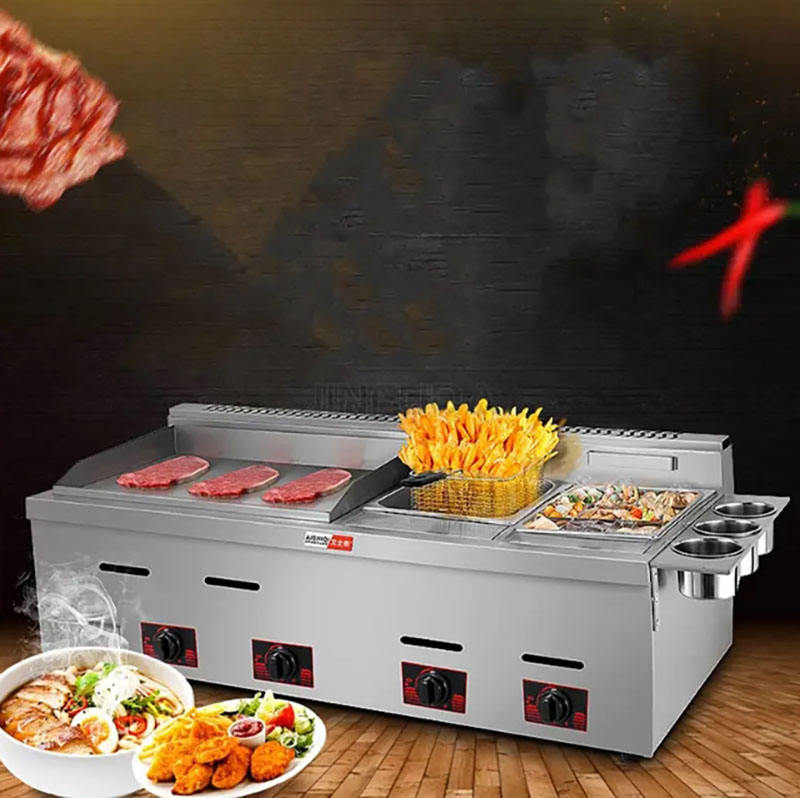 Commercial Kitchen Equipment 12L Large Capacity Gas Griddle Deep Double Fryer Machine 304 Stainless Steel Cooking Equipment