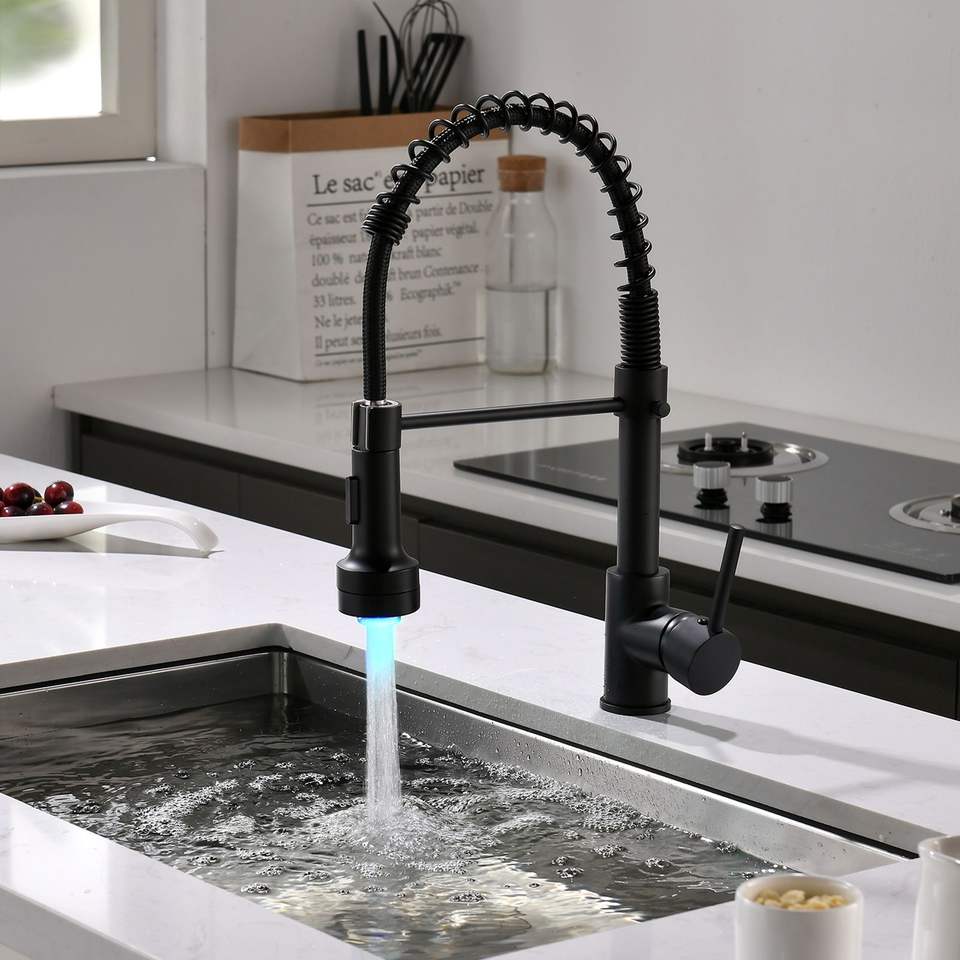 Commercial LED Pull Down Sprayer Kitchen Faucet Single Handle Single Lever Sink Faucet