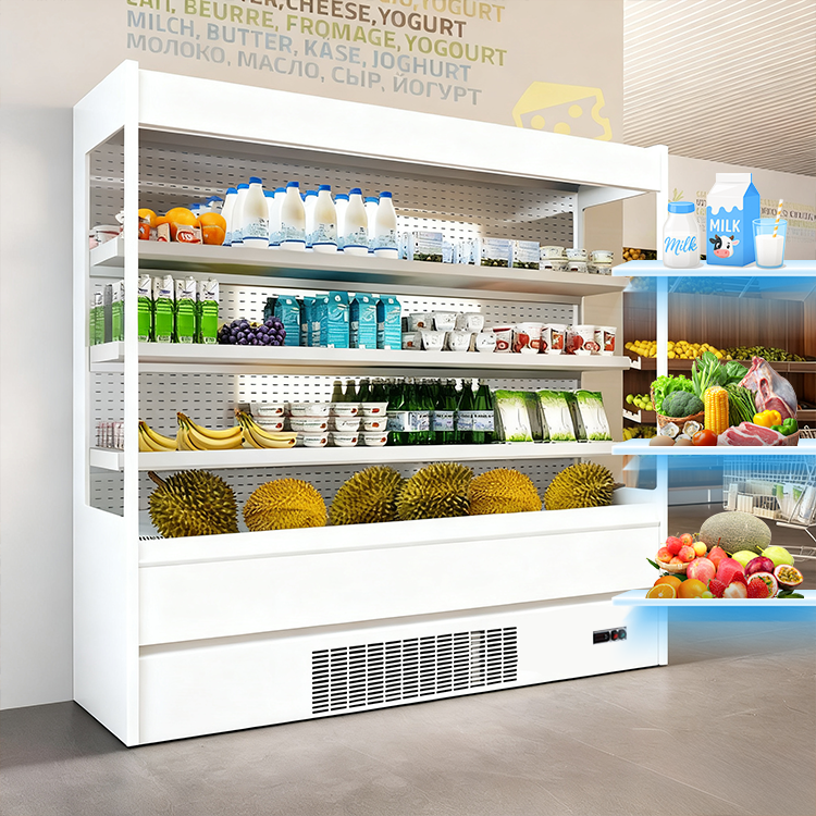 Commercial Meat Chiller Open Air Curtain Cabinet Refrigerator for Shopping Mall Supermarket