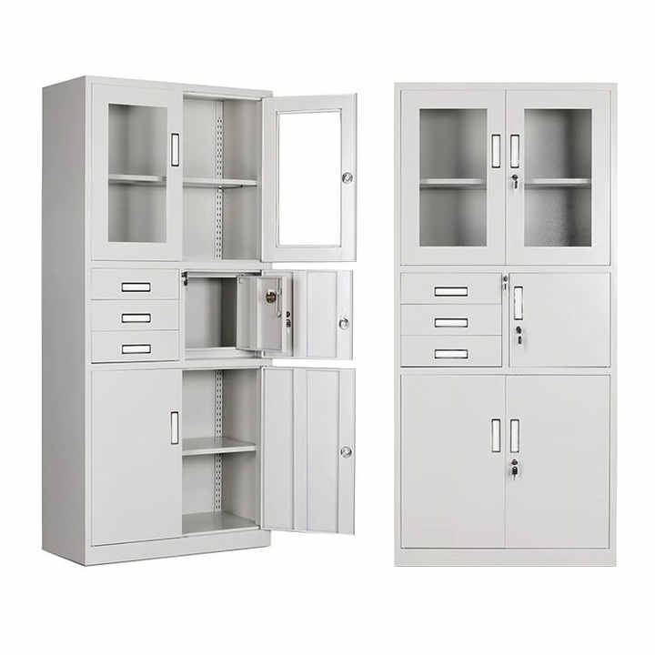 Commercial Modern Cupboard Home and Furniture Storage Glass Doors Lock Steel Metal with Safe Box Office 3 Drawer Filing Cabinet