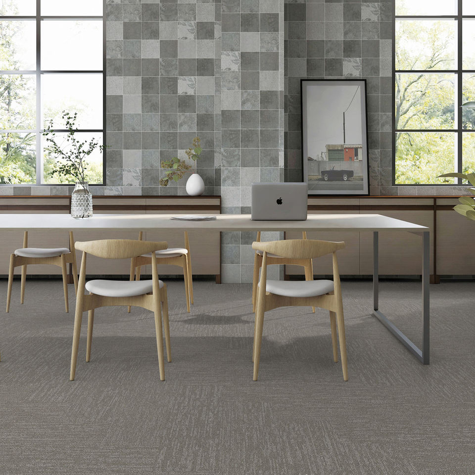 Commercial Office Carpet Tiles Non-Slip Stain Resistant Eco-Friendly PP PVC Backing Modern Striped Square Design for Hotel Lobby