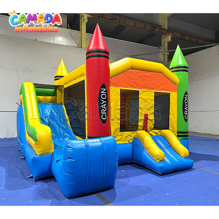 Commercial Outdoor Crayon Inflatable Bounce Slide Combo Bouncer House Jumper UV Protective Flame Retardant Max Capacity 800kg