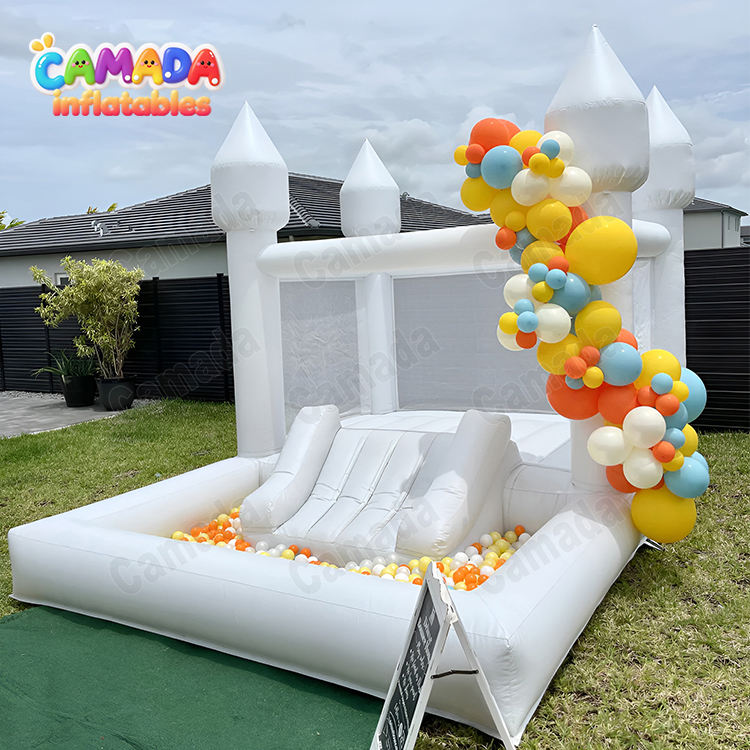 Commercial PVC Bouncy Mini Toddler White Bounce House Inflatable Wedding Bouncer Castle With Ball Pool Slide Pit for Rental