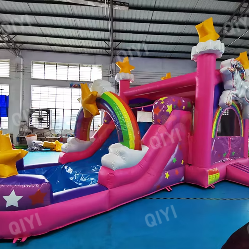 Commercial Pink Unicorn Themed Inflatable Bounce House Rainbow Slide PVC Material Party Sports Park Trampoline Park Shopping