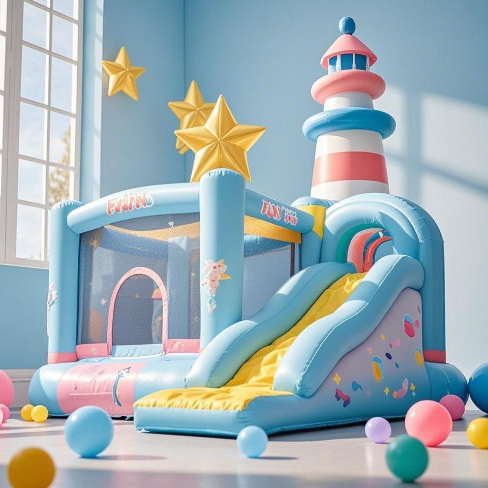 Commercial Portable Inflatable Jumping Castle Kids Birthday Party Outdoor Events Bounce House with Safety Netting Rainbow Castle