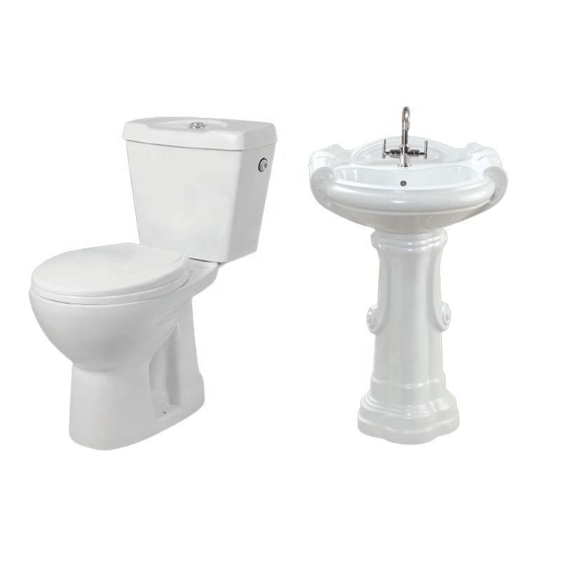 Commercial Quality Ceramic Two Piece Toilet Pedestal Basin Set Sky Blue Color for Bathroom Use Togo Market Economically Priced