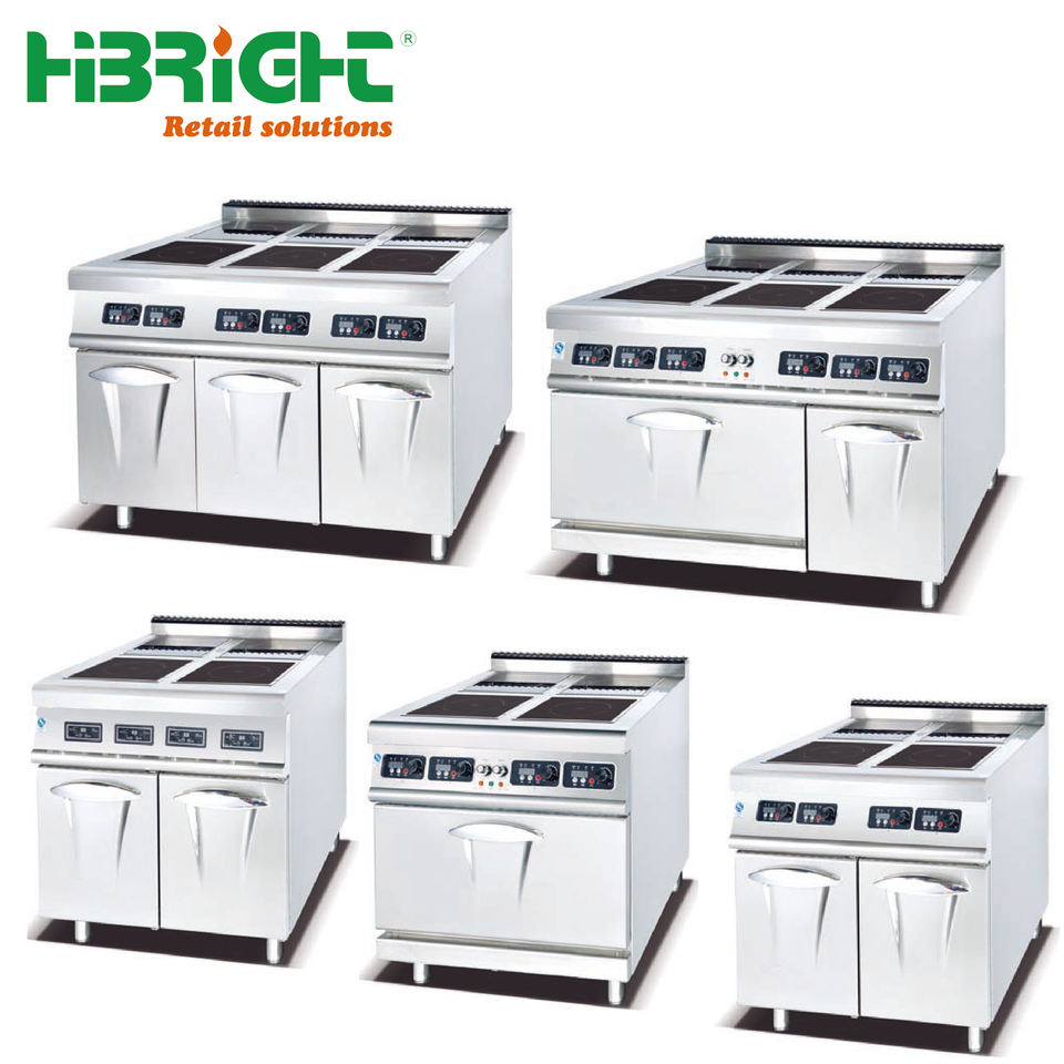 Commercial Restaurant Induction Cooker 3N~380V Vertical 4/6-Hot Square Plate Electric Range with Gas Oven