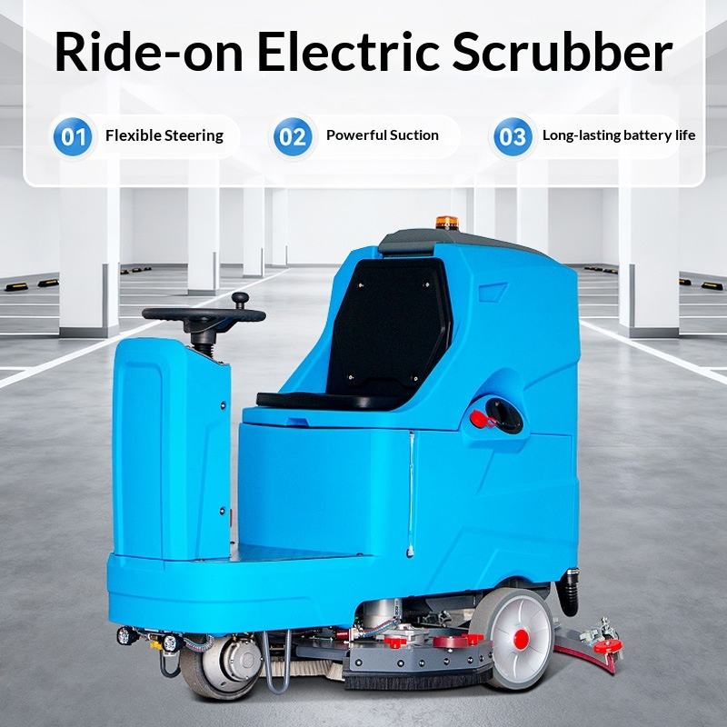 Commercial Ride-On Floor Cleaning Machine Electric Industrial Scrubber Dryer for Warehouse Factory Workshop Floor Cleaning Truck