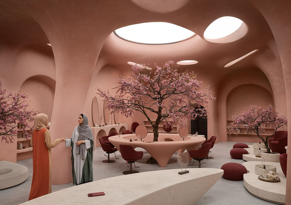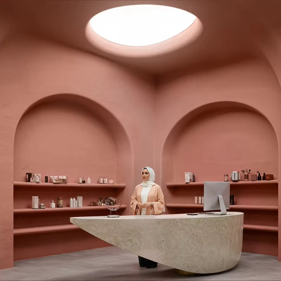 Commercial Salon Reception Counter Set Custom Beauty Shop Display Shelf for Spa Salon Interior Design Service