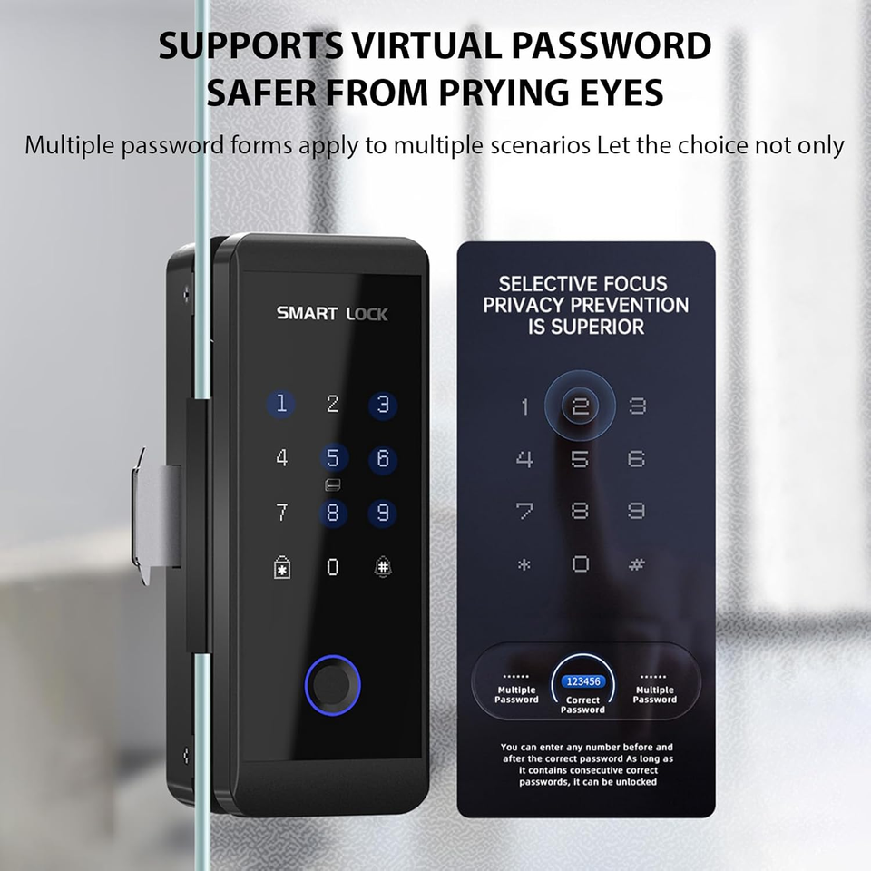Commercial Smart Glass Door Lock Tuya TTlock APP Control Fingerprint Temporary Password Mechanical Key Adjustable Direction