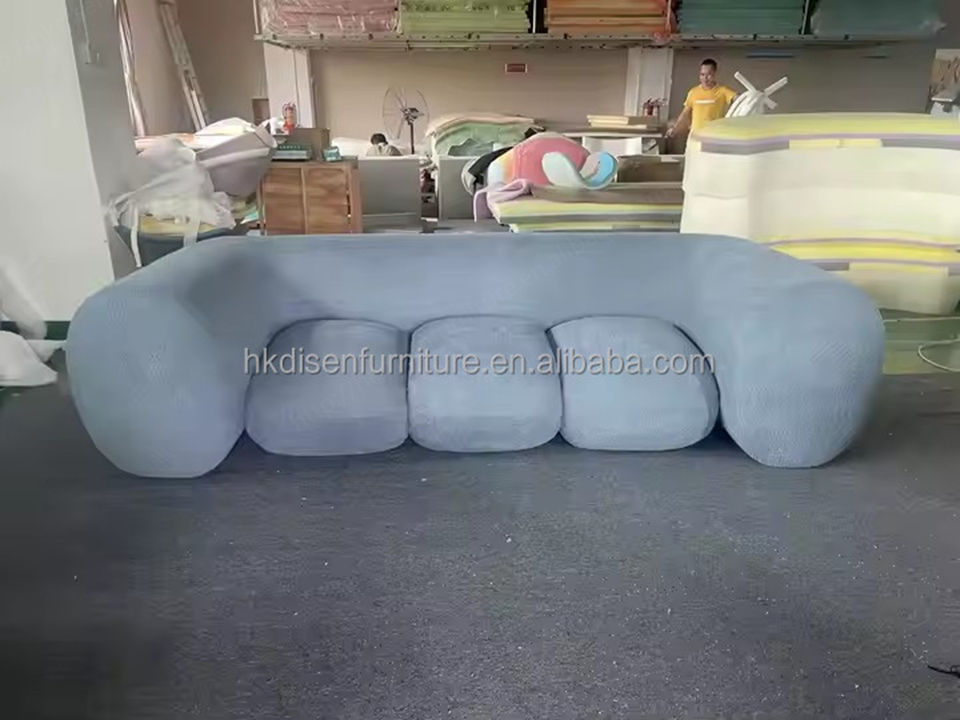 Commercial Sofa Curved Couch Shop Comfortable Velvet Blue Fabric Intermede Sofa 3 Seats Sofa