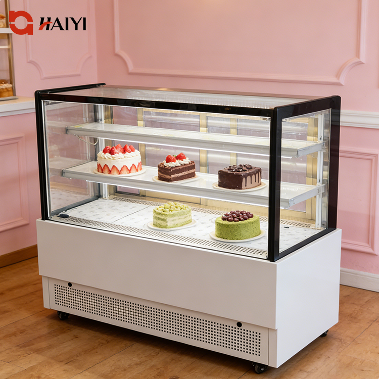 Commercial Square Edge Stainless Steel Air Cooling Cake Display Fridge with Adjustable Shelves for Dessert Shop