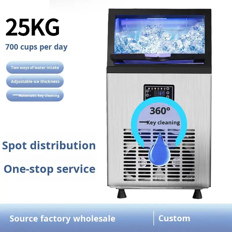 Commercial Stainless Steel Ice Cube Maker with 25kg/56lbs Continuous 24H Ice Production Factory Direct Sales