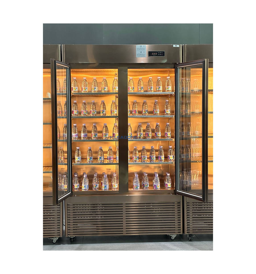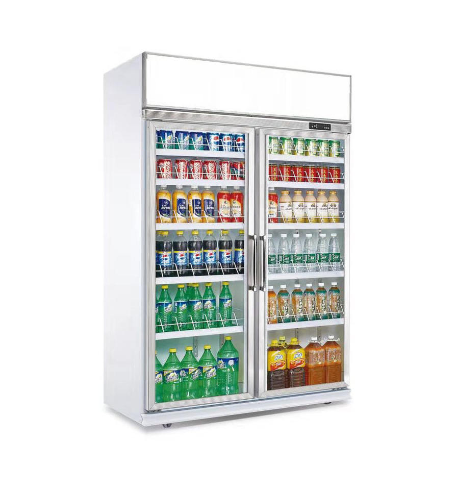 Commercial Stainless Steel Refrigeration Equipment Supermarket Display 2 Glass Doors Single-Temperature Air Cooling