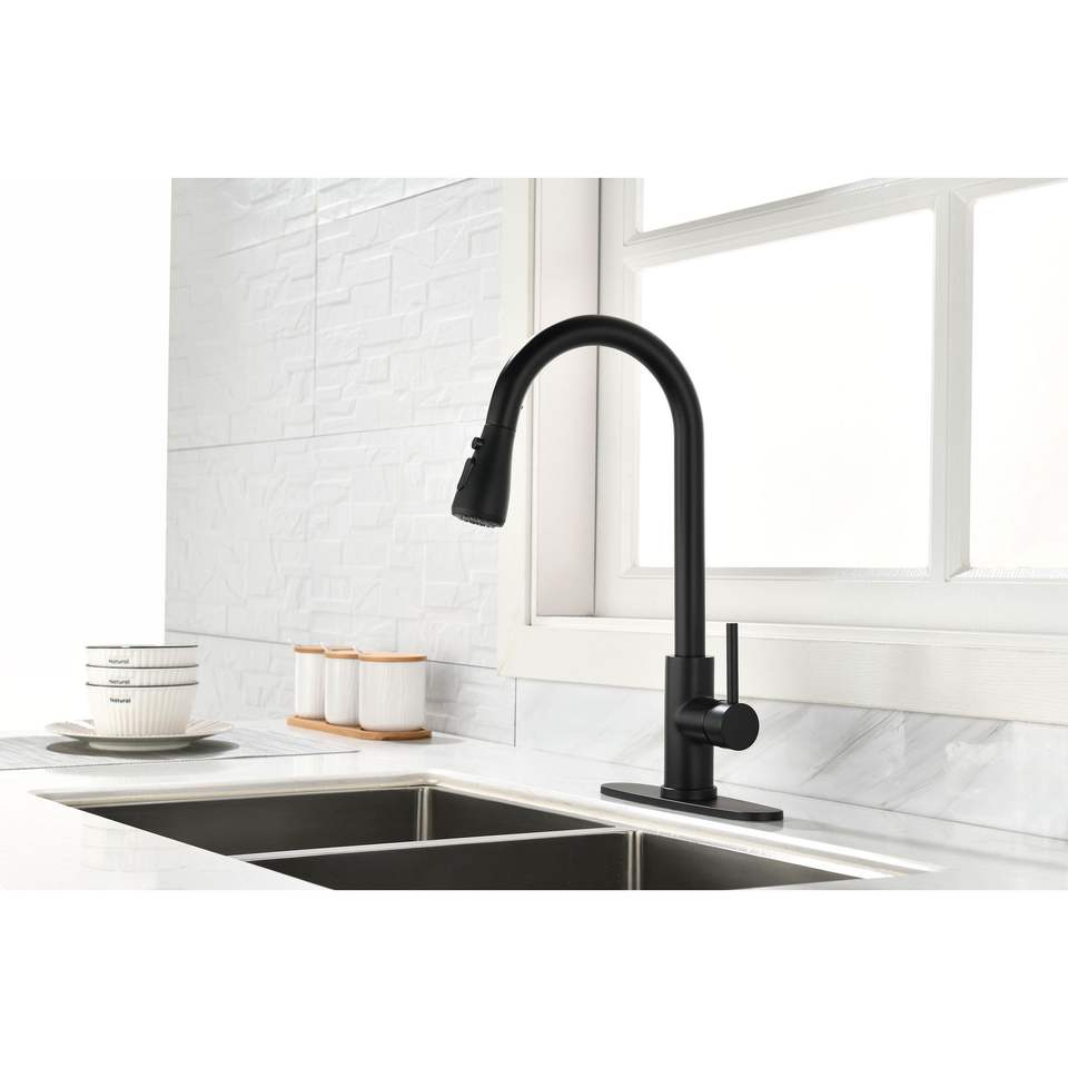 Commercial Stainless Steel Single Handle Kitchen Faucet with Pull-Down Sprayer Single Hole Kitchen Sink Faucet