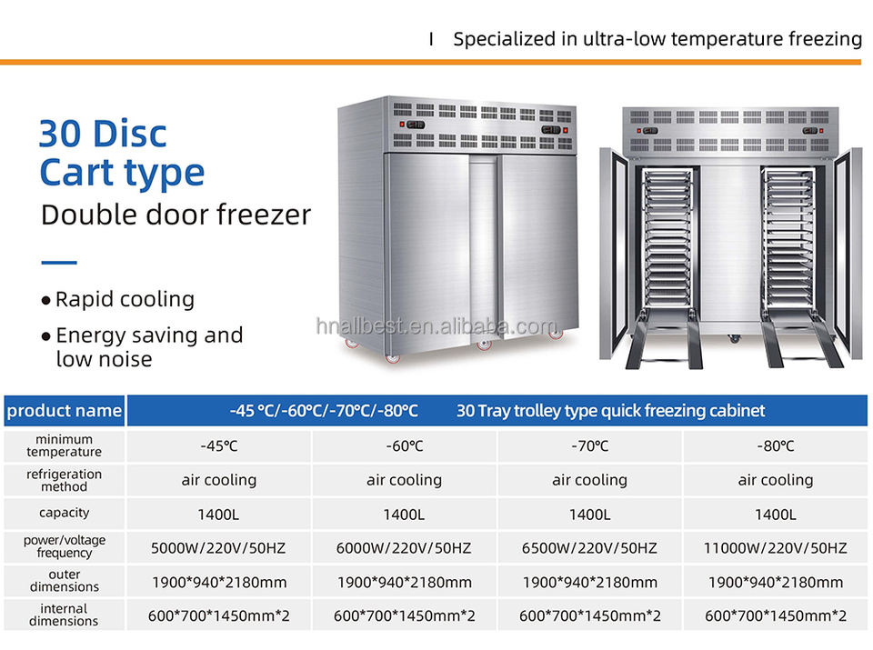 Commercial Two Door Roll-in Trolley Blast Freezer Air Cooling Stainless Steel 30 Trays for Food & Beverage Machinery