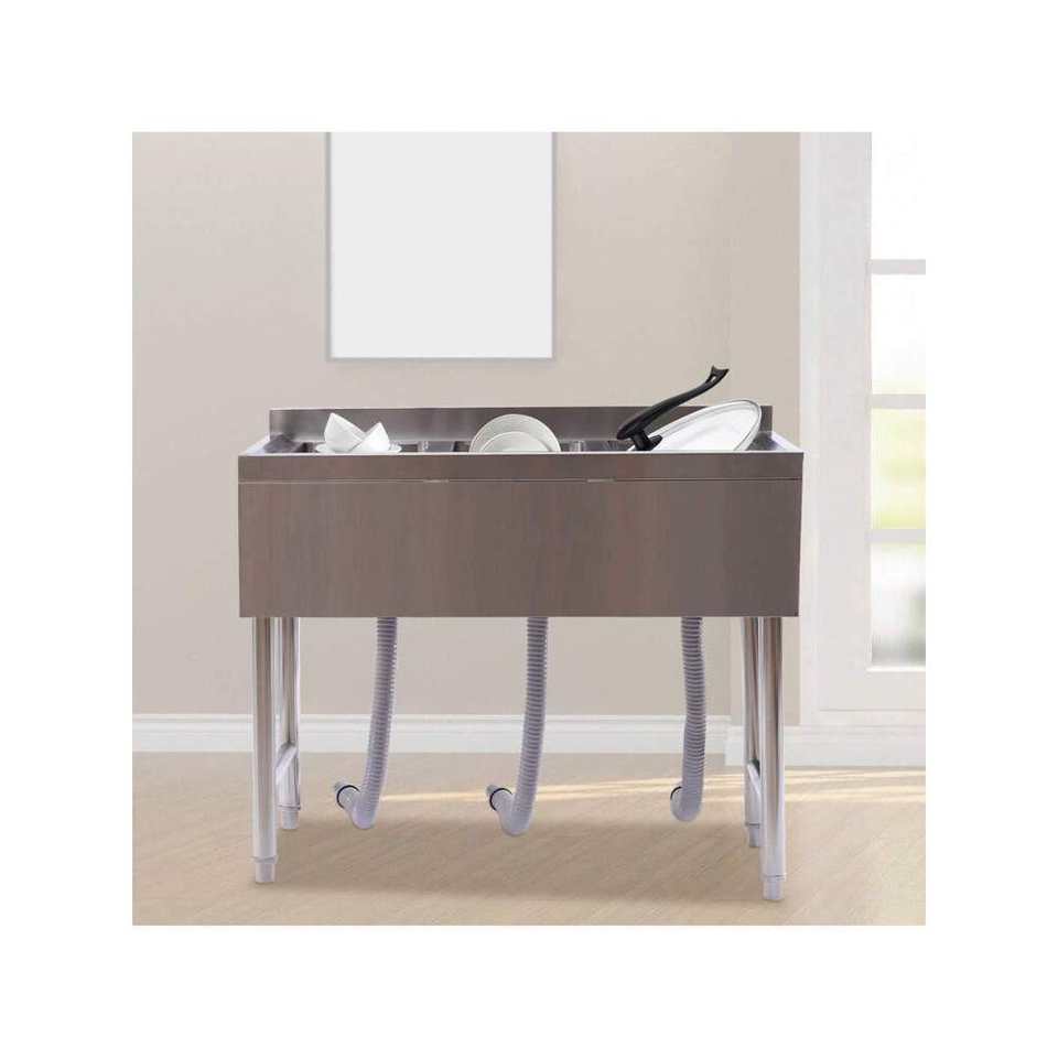Commercial Utility Basin 3-Compartment Stainless Steel Sink with Faucet 10\" L X 14\" W X 10\" D Bowl for Restaurant and Bar