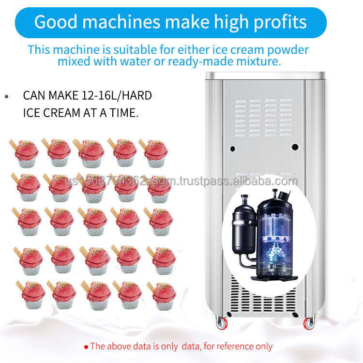 Commercial Vertical 12-16 L/H Hard Ice Cream Machine New Automatic Frozen Snack Equipment with Yogurt Milk As Raw Materials