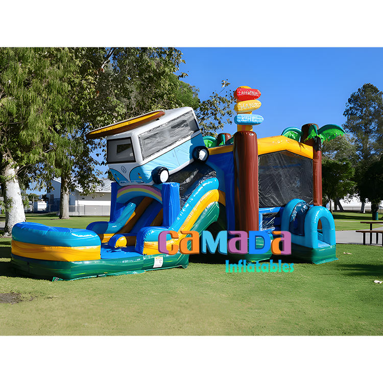 Commercial Wet Dry Jumping Bouncy Bounce House Water Slide Combo Dual lane Tropical Inflatable Bouncer Castle Combo for Sale