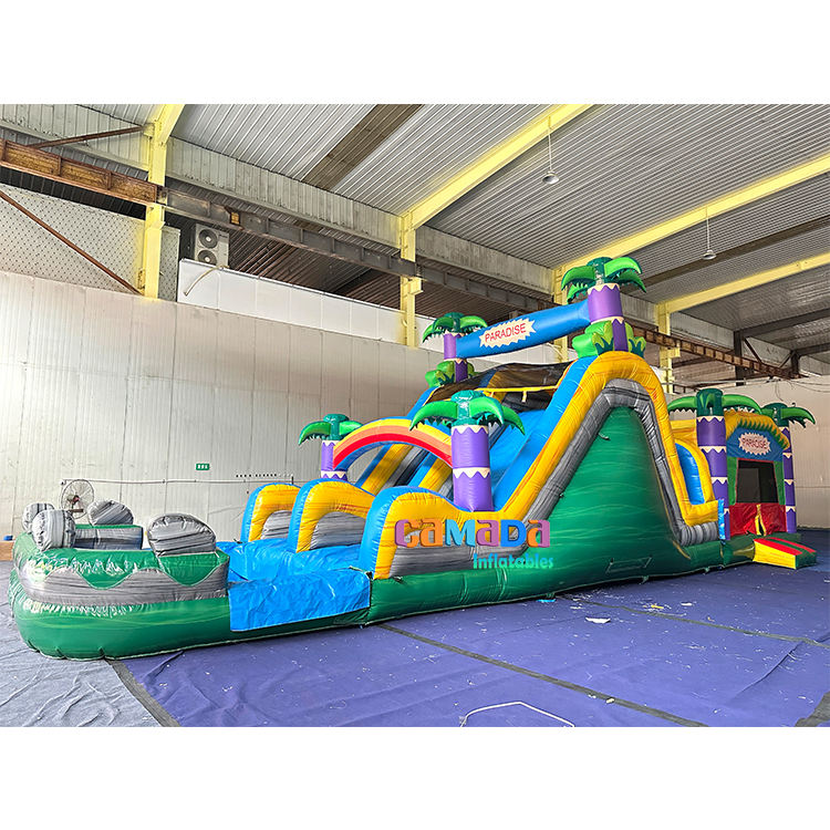 Commercial juegos inflables infantil bouncy castle double side water slide jungle inflatable obstacle course