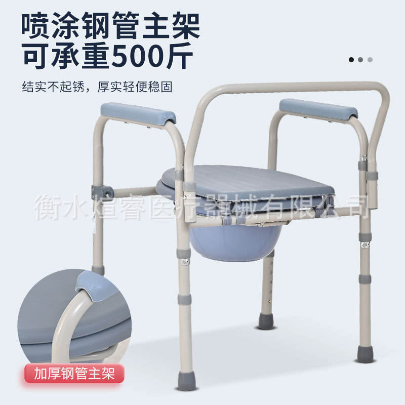 Commode Chair For Elderly Foldable Portable Toilet Stool With Thick Steel Frame 500Lb Capacity Bathroom Seat