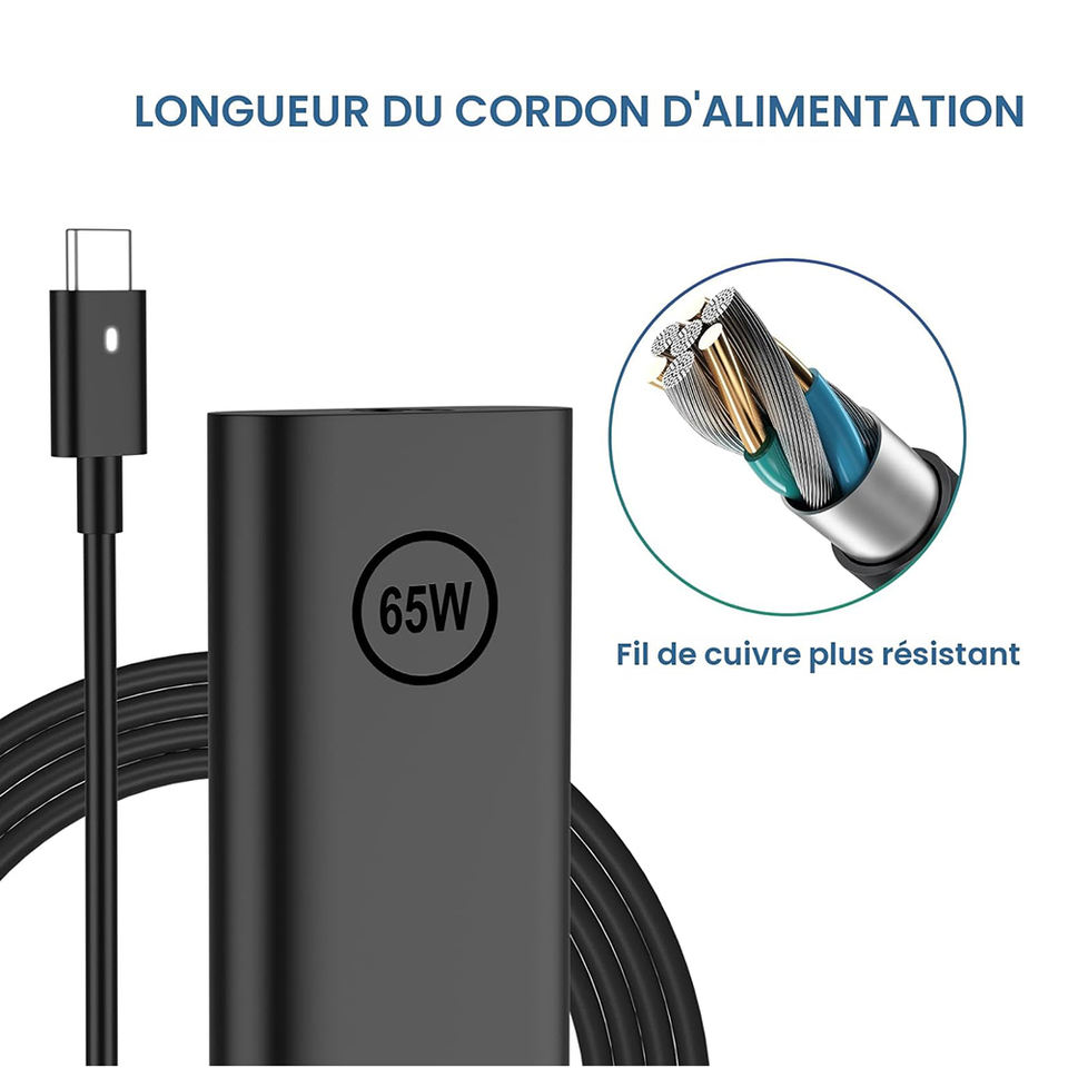Compact 65W GaN USB-C Fast Charger, Multi Function For Dell Laptop, Tablet And Phone With Type-C Interface