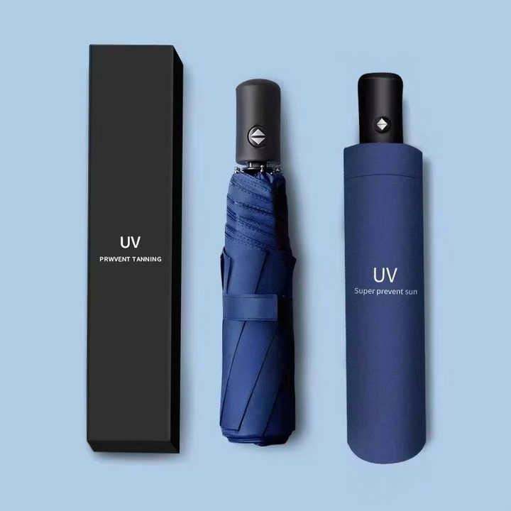 Compact 8-Rib Automatic Folding Umbrella Windproof UV Protection Cloth Country Style Backpack Travel Accessory Adults Logo