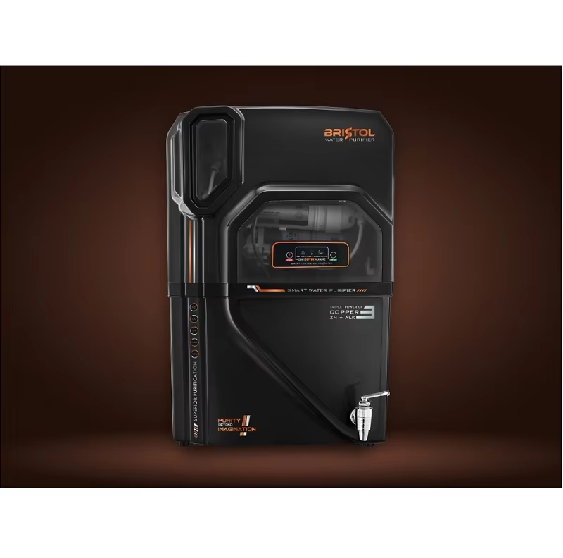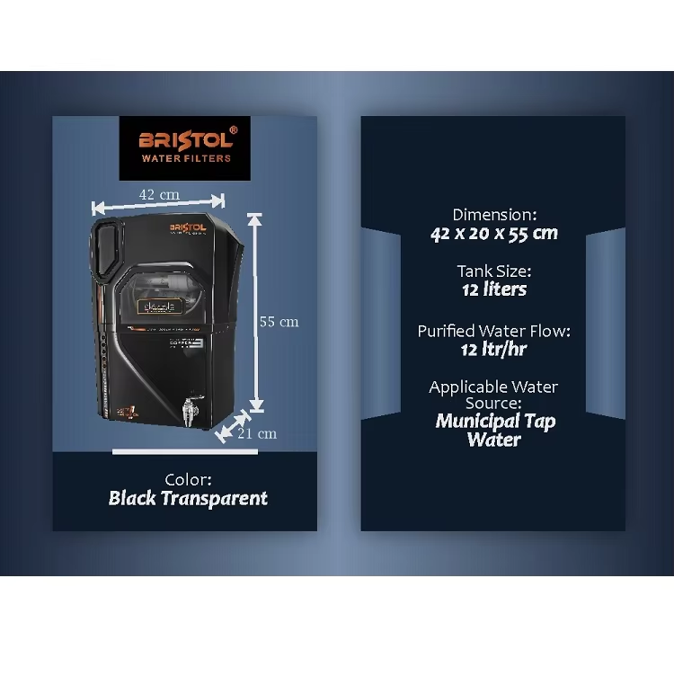Compact Electric Reverse Osmosis System Black Transparent Design for Home and Office Plastic Material Pure Drinking Water
