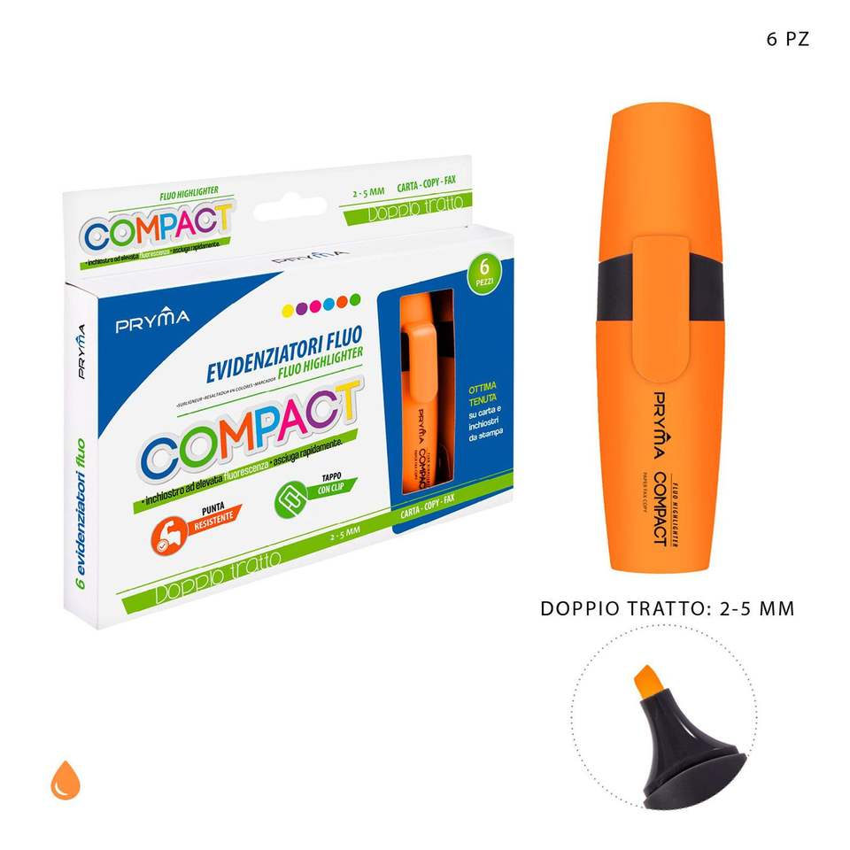 Compact Fluorescent Orange Highlighter 2/5mm Flat Head Oblique Brush Tip Plastic Cute for School Use Available Set Loose
