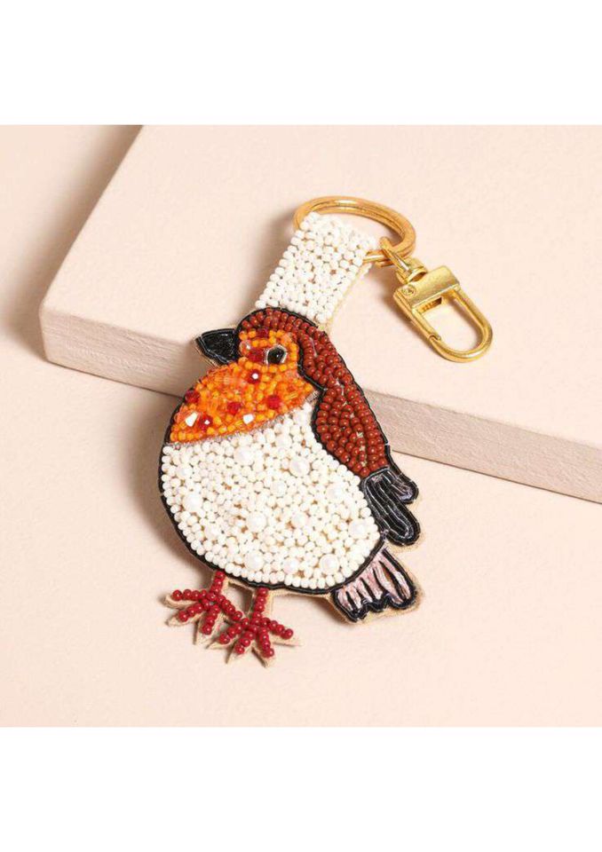 Compact Lightweight Handmade Fabric Beaded Mini Keychain Floral Design Womens Fashion Accessory Adjustable Multi-functional