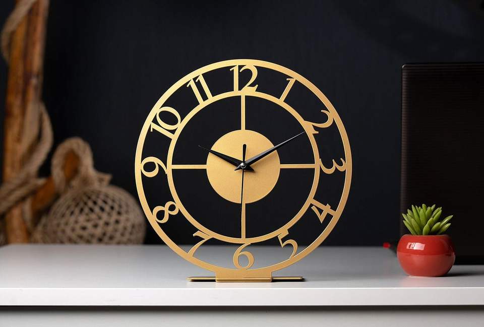 Compact Metal Desk Clock For Small Desk Spaces With Decorative Appeal And Practical Timekeeping Function
