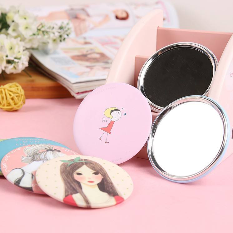 Compact Mirror Round Portable Makeup Touch Up Mirror Cartoon Design For Students And Girls