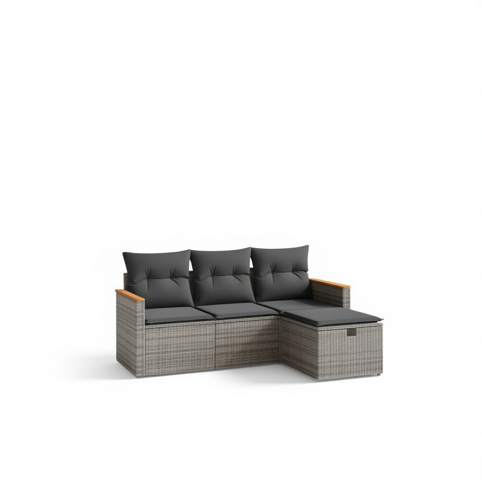 Compact Modular Grey Pe Rattan Garden Sofa Set Outdoor Furniture Collection 3 Seater Contemporary Design Weather Resistant