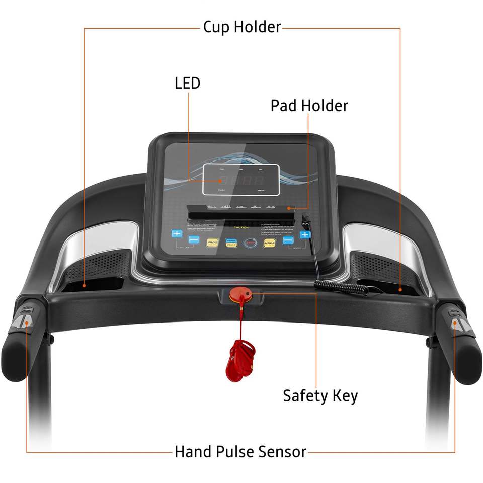Compact Motorized Running Jogging Machine Easy Folding Treadmill with Audio Speakers and Incline Adjuster