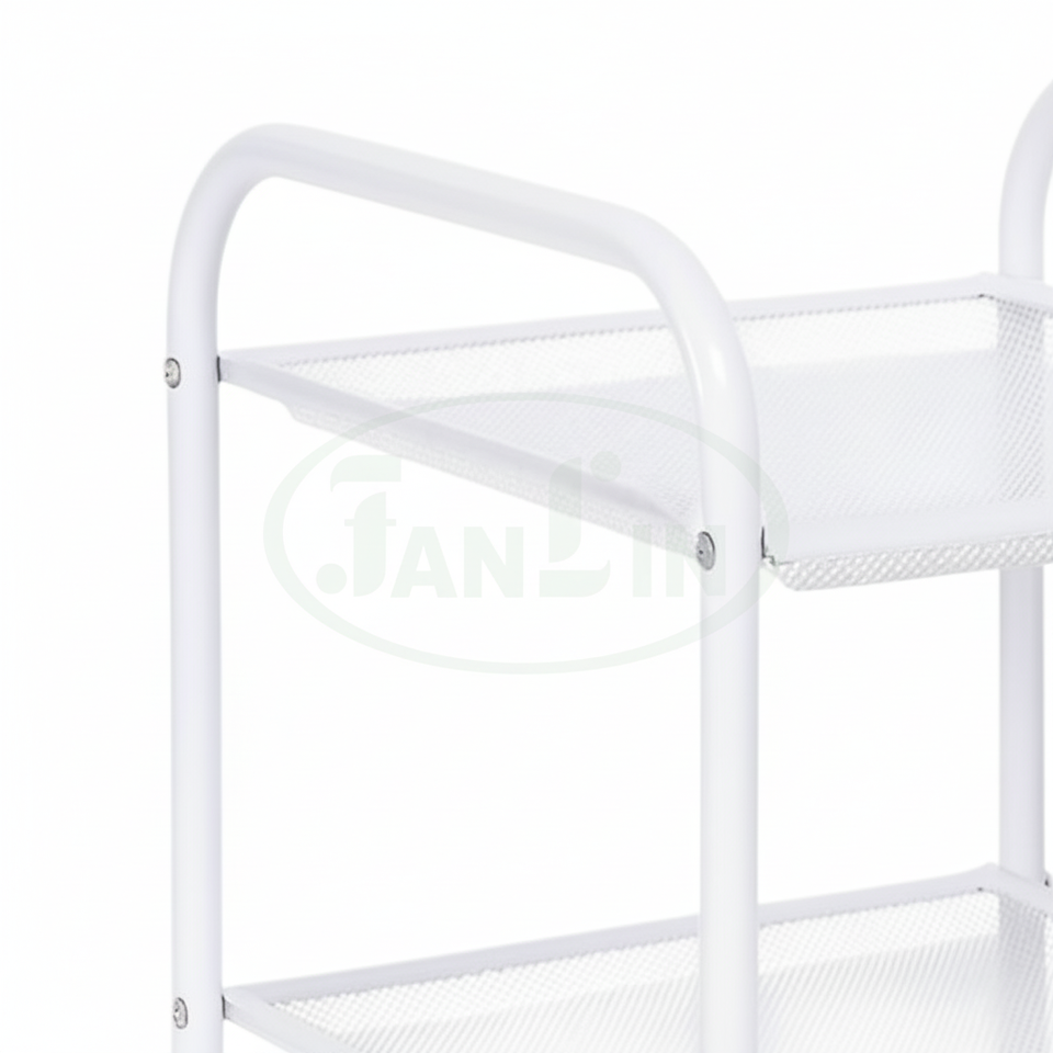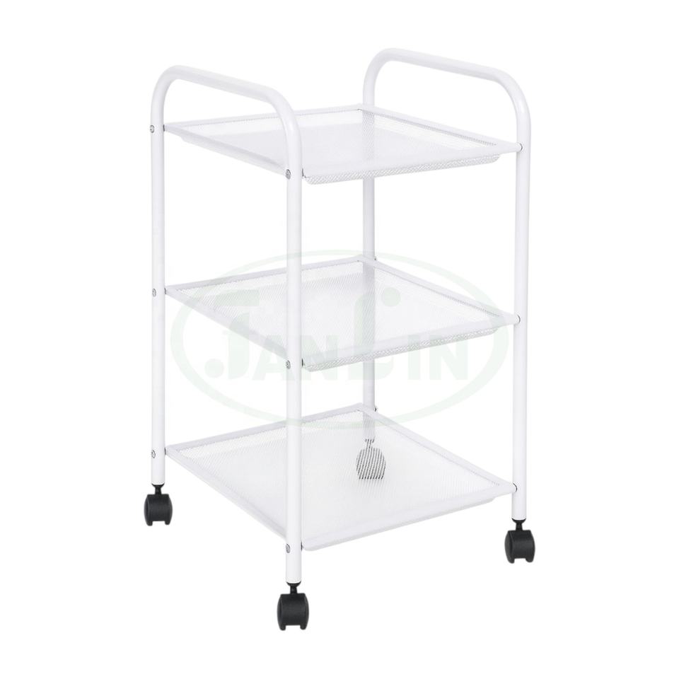 Compact Movable Three-Layer Metal Mesh Storage Trolley with Wheels Modern Minimalist Kitchen Utility Cart