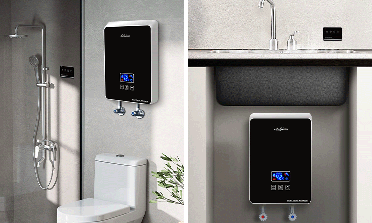 Compact Size Instant Electric Geyser 190x60x280mm Multi Point Hot Water Supply Copper Connection Overheat Protection